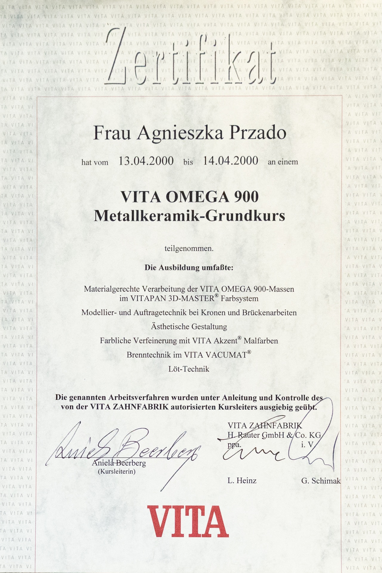 Jest absolwentką Wydziału Lekarsko-Stomatologicznego Akademii Medycznej we Wrocławiu. Ukończyła Studium Techniki Dentystycznej z wynikiem celującym, uzyskując tytuł Międzynarodowego Technika Dentystycznego City & Guilds of London Institute.